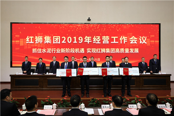 章总指出,2019年是集团高质量发展关键一年,以提升经营质量和效益为中心,坚定不移实施“立足水泥主业、打造水泥生态圈、做好资产配置”战略,提升资产质量、防范经营风险,坚持创新驱动和绿色发展,打造“狮子型”团队,实现高质量发展。优化组织机构,打造基于发展战略和高效率的组织,建立与加快海外发展相适应的组织体系,建立对市场、客户需求作出敏捷反映的组织体系,建立能够对外部环境变化作出高效决策的组织体系,建立为业务前端提供强大后台技术支撑的组织体系,建立为员工赋能的组织体系,让员工发挥自身作用、为公司创造价值。强化创新驱动,在技术研发、数字红狮上下功夫,充分发挥水泥应用技术研究所和技术中心创新主力军作用,聚焦智能制造和数字红狮为主的技术创新,构建水泥制造每个环节技术的研发体系,形成强大技术驱动能力。未来企业竞争是专业级赛手之间的竞争,部室各专业研究人员要掌握各自专业前沿技术、管理,成为专业级优秀选手。加强技术规范建设,把技术规范融入生产经营发展各环节,使每项具体工作有了做成精品标准,提升工作质量、运营效率和快速复制;实现满负荷生产,充分发挥产能,加强生产管控,提高设备运转率,各部室及子公司管理人员深入生产一线提供优质服务,实现满负荷生产;加强环境保护,打造生态红狮,持续推进车间标准化、外观标准化、厂区绿化、进厂道路美化、绿色矿山建设等,树立良好企业形象;加强与信誉好、实力强单位合作,建立战略合作伙伴关系。战略合作是双方出于长期共赢考虑,建立在共同利益基础上的深度合作,不是价值转移而是产生新的价值,能够给合作双方带来长期利益,选择与行业排名靠前、银行信用好、技术力量强、售后服务好、综合实力强的单位建立战略合作伙伴关系,实现合作双方互利共赢、共同发展。