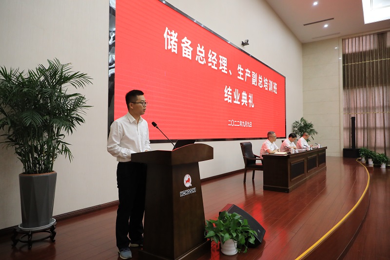 根据本次培训考核安排,评选了优秀学员和最佳团队。优秀学员代表杜松昭发表学习感言,感谢集团领导对储备总经理、生产副总培训班学员的关心,表示会尽快成长为一名合格的总经理/生产副总,做到会管理、会测算、会沟通、会协调;能谋划、能预判、能解决、能争取;向客户要利润,向车间要效益,向同行要协同,向政府要政策等;心怀感恩,带领团队完成集团各项任务,不辜负公司领导的厚望,做到力出一孔,利出一孔,为集团发展作出更大贡献。