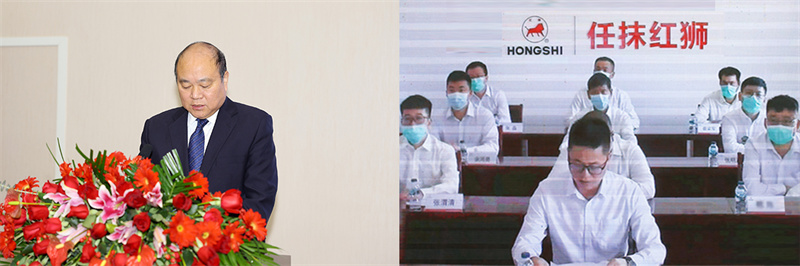 集团领导章锦鸿、章旭喜、范炜刚、章经忠、章献宏、鲁雄伟出席会议。集团部室、区域公司、子公司总经理,获奖单位及员工代表现场参会。浙江红狮、邻水红狮、高安红狮、老挝万象红狮、尼泊尔红狮希望、印尼任抹红狮等海内外80余家子公司中层及以上人员2000余人视频参会。
