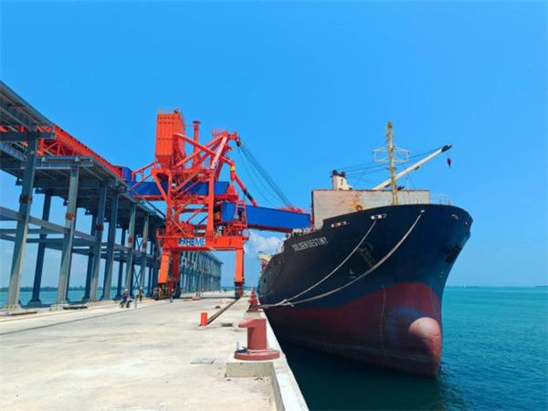 10月28日上午11时18分,印尼东加红狮码头机器轰鸣,随着装船机伸缩罩缓缓落下,熟料顺利入仓装船,标志着东加红狮海港码头正式投入运营,踏上海运销售新征程。