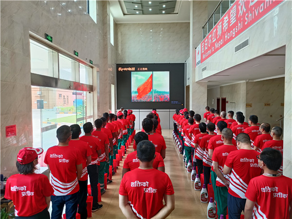 10月5日下午,在厂经营班子、中层干部及中尼员工代表,齐聚办公楼大厅,在尼泊尔历新年“德赛节”到来之际,唱响中尼国歌及《我和我的祖国》,共同“庆国庆,迎德赛”,并举办了第三季度员工福利发放仪式,为尼泊尔籍员工送上德赛节贺卡和新年祝福。