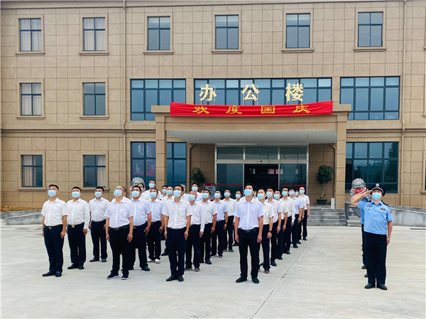 2021年10月1日上午,大田红狮在新办公楼广场前举行了庄严隆重的升旗仪式。大田红狮副总经理赵永潮携班子成员、中层及销售供应经理,并荣邀太华镇副镇长、派出所等代表8人,共同参加了本次升旗仪式。