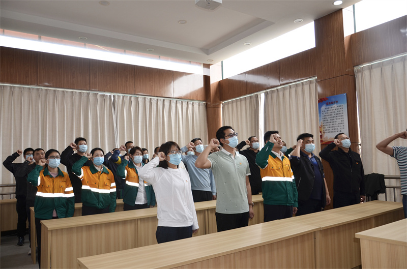 一个党员一面旗帜,市、县环保局党支部党员参观公司党支部,提出指导意见,对公司党支部工作给予充分意见,重温入党誓词,不忘初心,牢记使命,脚踏实地开展工作。