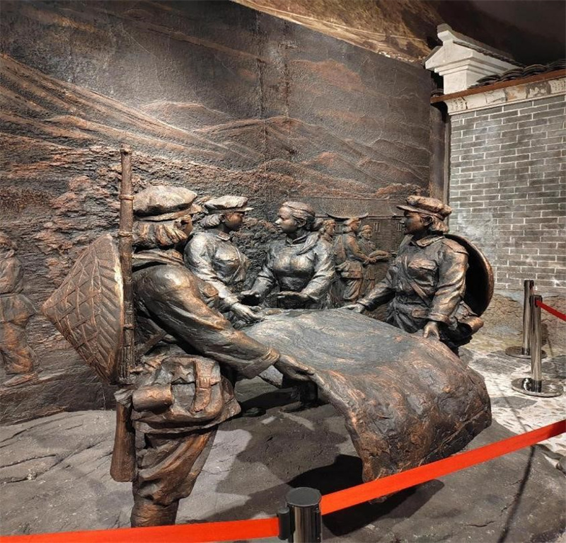 活动当天,大家心怀敬意地踏上了此次学习之旅。走进大门,映入眼帘的就是广场中间半条被子雕塑,时隔八十多年,趟过历史长河,三位女红军与村民徐解秀仍在推让那唯一的棉被,广场上冰冷的雕塑在太阳底下散发着温暖的气息,那是人心的温暖。