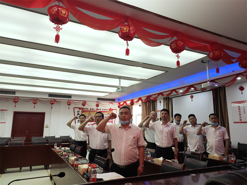 在党支部书记、总经理胡文超同志的带领下,全体党员佩戴党徽,举起右手、握紧拳头,庄严宣誓:“我宣誓,我志愿加入中国共产党,拥护党的纲领,遵守党的章程……永不叛党。”铮铮入党誓词响彻会议室,既是对建党101周年的深情礼赞,也表达了全体党员传承红色基因、时刻不忘初心和永远奋斗前行的决心。全体党员同志以这次重温入党誓词活动为新的起点,切实把思想和行动统一,立足岗位,扎实工作,开拓创新,乐于奉献,争先创优,以坚定的理想信念、崭新的精神风貌、饱满的工作热情、坚强的党员意志,投入到工作中,建设一支“敢打仗、能打仗、打胜仗”的狮子型团队。