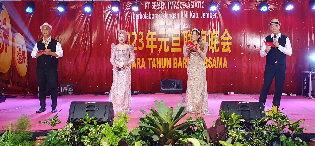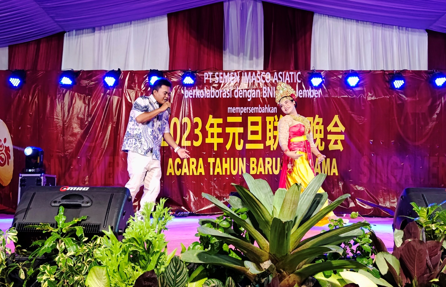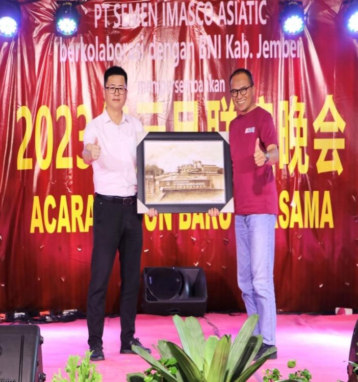 晚会伊始,主持人首先登台,印尼区域董事长胡总作晚会致辞。胡总带着大家回顾了过去的一年并展望未来,一番振奋人心的话语过后,现场响起了热烈的掌声。随后任抹红狮总经理龚总和任抹县BNI银行行长Harbani先生交换纪念品,至此,晚会正式拉开序幕。