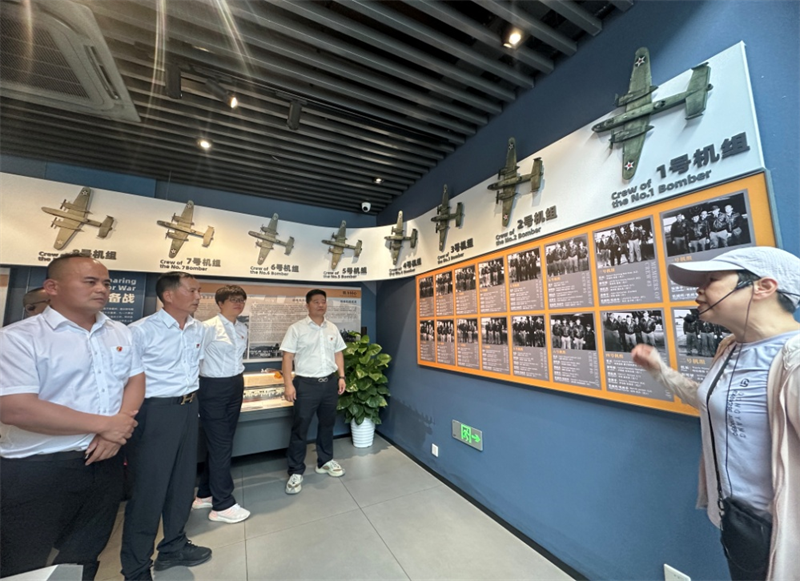全体党员一行怀着崇敬的心情先来到杜立特行动纪念馆参观。1942年4月18日,美国发动了“杜立特空袭行动”,这是二战期间对日本本土的首次空袭,极大鼓舞了反法西斯战争的士气。纪念馆内展出了“大黄蜂”号航空母舰、B-25轰炸机模型以及200余张珍贵历史图片,近200件与“杜立特空袭”及浙赣战役相关的文物,其中绝大部分为首次公开展出。作为全球唯一全景式反映“杜立特突袭”主题的纪念馆,这里生动再现了中美两国人民共同抗击法西斯的英勇事迹。党员们在参观中深刻体会到国际合作的重要性,并对英雄们的大无畏精神致以崇高敬意。